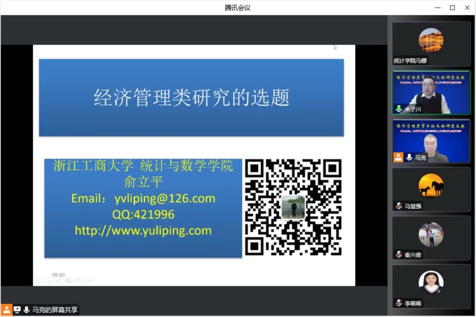 师生和期刊社编审做了题为“经济管理类学术论文的研究选题”的线上学术报告,党委常委、副校长米子川教授主持了本场报告。