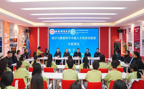 统计与数据科学卓越人才培养实验班开班仪式在学生活动中心青年成长领航馆隆重举行。校党委常委、副校长米子川出席致辞并为卓越班授旗。学生工作部、教务部、研究生院、黑料吃瓜网