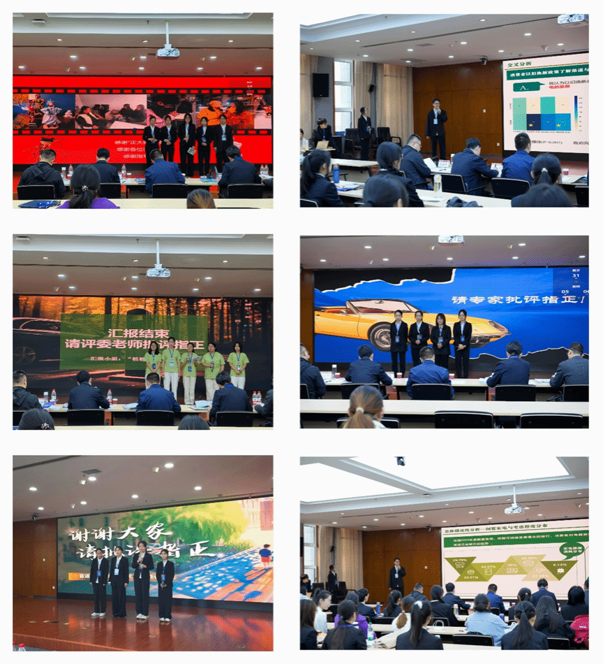 19日上午,7支研究生团队围绕绿色节能家电购买意愿、Z世代与生成式AI情感依恋、智能驾驶接受度、Z世代考公考研选择、公用充电桩使用、传统文化IP现代演绎、山西古建筑开发与保护等选题进行了精彩展示和答辩。各团队通过严谨的数据分析和理论框架,对评委提出的研究方法及样本选择等问题作出专业回答。19日下午,12支本科生团队带来精彩展示。作品选题涵盖城乡居民金融投资与风险防范、红枣醋市场开发、药食同源烘焙产品创新、文旅产业探索、DeepSeek用户调研、Z世代AI音乐认知、低空旅游、晋商大院文旅开发、盲道建设、山西旅游与大学生互动、玉露香梨市场挖掘、头锅原浆消费行为分析等领域。选题方向新颖独特,研究内容丰富详实,现场展示形式多样,赢得评委与现场观众的热烈掌声。五位评委从研究方法、抽样设计、建模过程等方面指出作品存在的问题与不足,并结合专业研究经验提出针对性改进建议。最终山西赛区大赛组委会将根据参赛队现场表现和作品报告成绩,选拔3支队研究生队和7支本科生队参加全国总决赛。