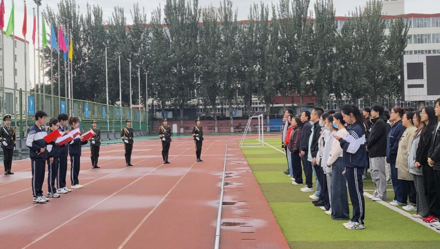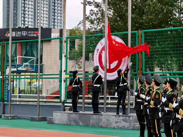 伴随着雄壮的《义勇军进行曲》,五星红旗冉冉升起、迎风飘扬。全体师生神情肃穆,面向国旗行注目礼,嘹亮的歌声中饱含着对祖国的无限热爱与崇高敬意,现场氛围庄重而热烈。