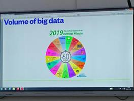 首先,高宇钊老师由大数据的起源阐述指出在当今信息数据社会,随着物联网、云计算等技术的广泛应用,以及社交网络、在线社区等网络环境的建立,大数据开始真正展现其市场价值。接着,高宇钊老师阐述了大数据的定义和大数据的特点。高宇钊老师形象生动的用扇形图表示互联网一分钟内发生的事情来介绍大数据包括什么。将大数据与传统数据的区别分成抽样调查,数据测量和他们两者之间的关系三个部分来着重介绍。